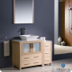 Fresca is pleased to usher in a new age of customization with the introduction of its Torino line. The frosted glass panels of the doors balance out the sleek and modern lines of Torino, making it fit perfectly in either ‘Town’ or ‘Country’ décor. Available in the rich finishes of Espresso, Glossy White and Light Oak, all of the vanities in the Torino line come with either a ceramic vessel bowl or the option of a sleek modern ceramic integrated sink.