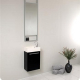 Innovative design and economical in size makes this ECO friendly vanity ideal for any smaller location, perfect for going “Green”. Available in various finishes ensures that regardless the color scheme at hand, anyone is sure to complete their space with guaranteed cutting contemporary chicness. Finally! A vanity ensemble that gets you in and gets you out into the world with style! A winning combination is complimented with an extra long vertical mirror and included faucet. Optional side cabinets are available.