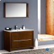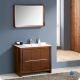 The Fresca 36″ Allier is a sleek, modern free standing vanity with plenty of storage space. This model is accented nicely with a matching mirror with small shelf. Optional side cabinets are available. Many faucet styles to choose from.