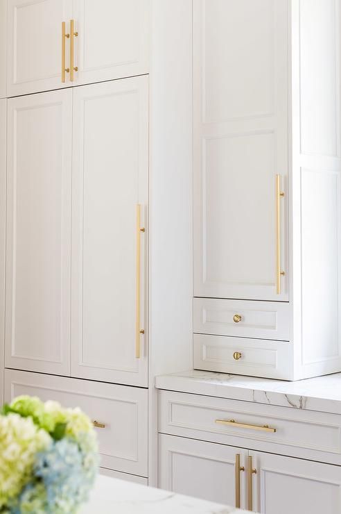Simple hardware doesn’t overwhelm on white shaker pantry cabinet