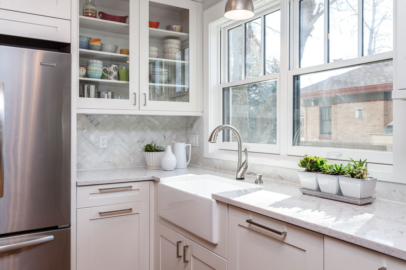 These shaker-style cabinets are one of the most popular because of their ability to blend in with different kitchen finishes as well as interior color mixes.