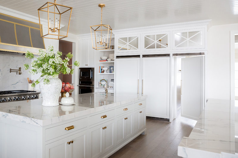 White shaker cabinetry with quartz countertops will create a beautiful cooking space that is equally comfortable and cool.