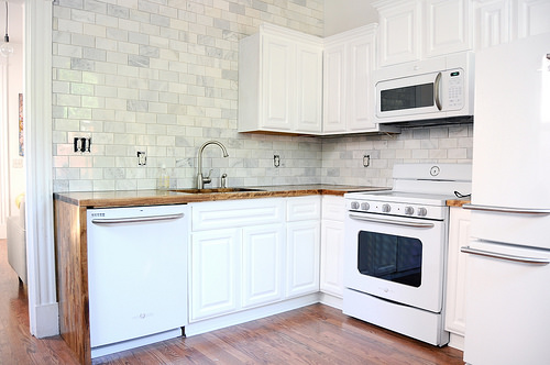 Many ceramic tiles for kitchen backsplash designs are seen as the focus of a kitchen. By installing white ceramic subway tile, you can place the focus on other kitchen elements. Magnificent stove hood, an inspired faucet fixture or ornate architectural details get the most of the attention. A traditional white subway tile pairs especially well with modern chrome. This look perfectly blends elements of vintage style and chic kitchen design when you choose ceramic tile for a kitchen backsplash. A white ceramic tile backsplash is a choice that is easy to make. It will provide many years of enjoyment in your Queens apartment.