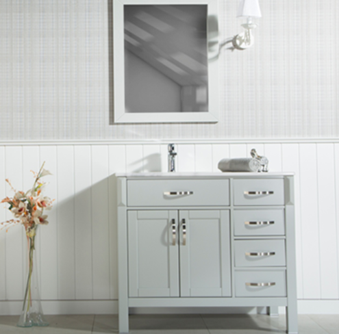 FAWNA modern/contemporary grey bathroom vanity comes in an optional marble countertop and white undermount porcelain sink.