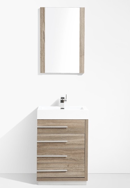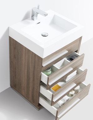 Barcelona’s pure and modern design is a perfect vanity for organizing all of your essentials by taking advantage of the vast storage space it provides. Built with a strikingly innovative design in an All Wood material, this vanity is enhanced with 4 efficiently easy access and full-extension soft closing drawers. Poised with a well sized rectangular acrylic sink, the Barcelona vanity expresses stylishness grace and functionality. Combined with a matching All Wood framed mirror, it provides a classic finish for your bathroom and is available in a different assortment of colors and sizes.