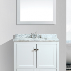 Dubai is a stylish series celebrated for its modern elegance with collective functionality by accommodating practical storage spacing for daily bathroom essentials. Designed with luxury in mind, the Dubai series is made with the durability of Solid Wood, sturdy White Carrera marble countertops, backsplashes, ceramic sinks and matching Solid Wood framed mirrors ranging in a wide array of different sizes to accommodate each individual living space needs.