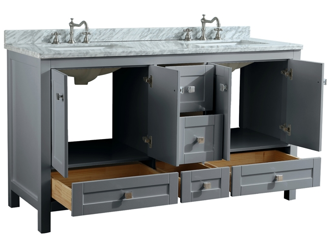 Dubai is a stylish series celebrated for its modern elegance with collective functionality by accommodating practical storage spacing for daily bathroom essentials. Designed with luxury in mind, the Dubai series is made with the durability of Solid Wood, sturdy White Carrera marble countertops, backsplashes, ceramic sinks and matching Solid Wood framed mirrors ranging in a wide array of different sizes to accommodate each individual living space needs.