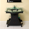 This vanity is for those looking for a more antique or classical look for their smaller bathroom. Rich espresso color with glass accent shelving and counter top highlight the curves and balance of this vanity. Comes with oak mirror with attached shelf. Many faucet styles to choose from. Optional side cabinets are available.