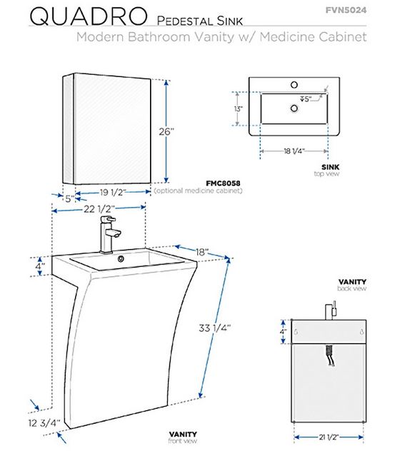 This all white vanity has the shape of the number 7 when viewed from the side. The Quadro is super stylish and very minimal, it will add a great effect to your bathroom. The included medicine cabinet features mirrors on the inside and can also be wall mounted, or recessed into the wall. Many faucet styles to choose from.
