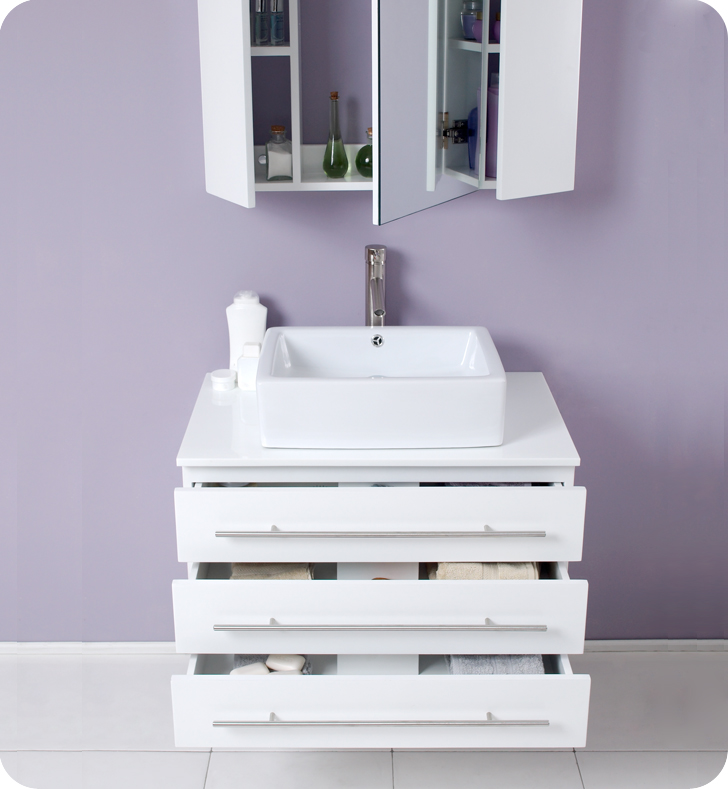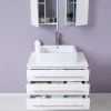 The Modello is perfect for smaller spaces. Clean lines and simple chrome hardware compliment the combination of white and chrome. Comes complete with medicine cabinet and marble countertop. Many faucet styles to choose from. Optional side cabinet is available.