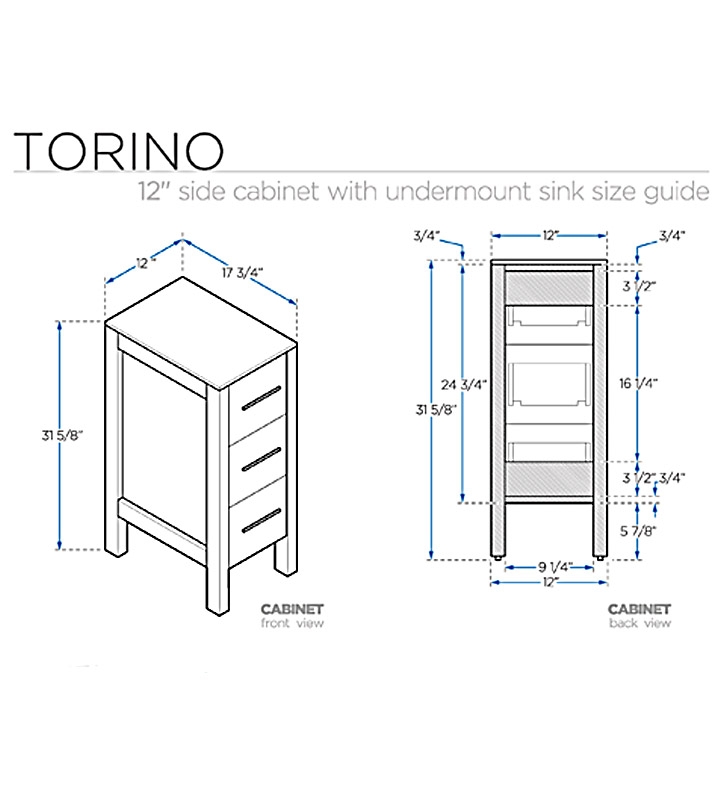 Side Cabinets: W 12″ x D 17.75″ x H 31.63″