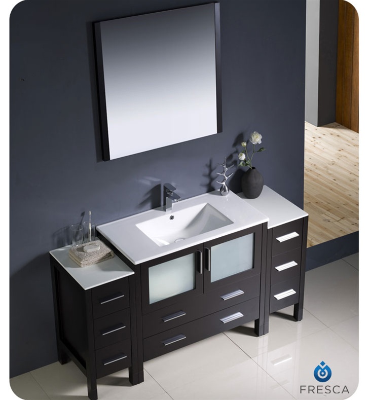 Fresca is pleased to usher in a new age of customization with the introduction of its Torino line. The frosted glass panels of the doors balance out the sleek and modern lines of Torino, making it fit perfectly in either ‘Town’ or ‘Country’ décor. Available in the rich finishes of Espresso, Glossy White and Light Oak, all of the vanities in the Torino line come with either a ceramic vessel bowl or the option of a sleek modern ceramic integrated sink.