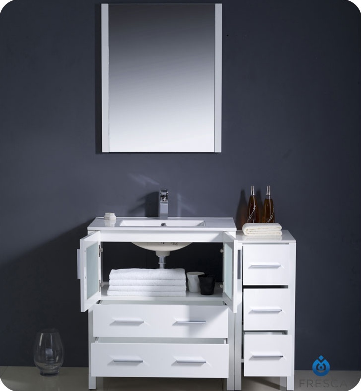 Available in the rich finishes of Espresso, Glossy White and Light Oak, all of the vanities in the Torino line come with