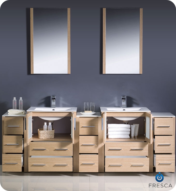 Available in the rich finishes of Espresso, Glossy White and Light Oak, all of the vanities in the Torino line come with