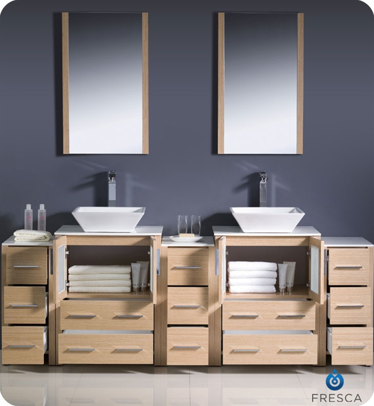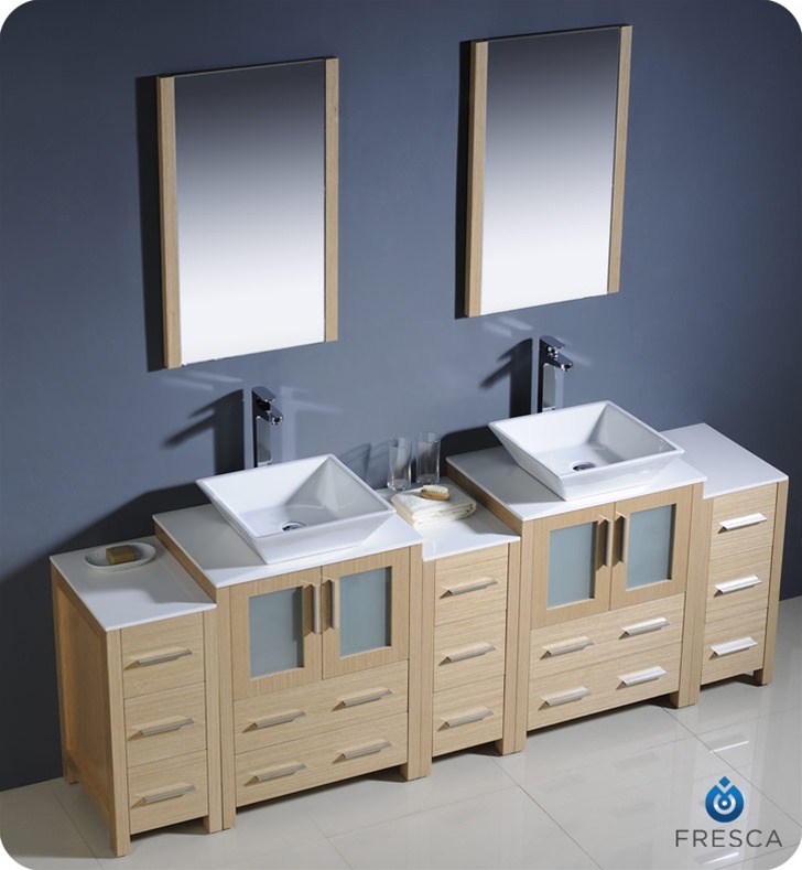 Available in the rich finishes of Espresso, Glossy White and Light Oak, all of the vanities in the Torino line come with