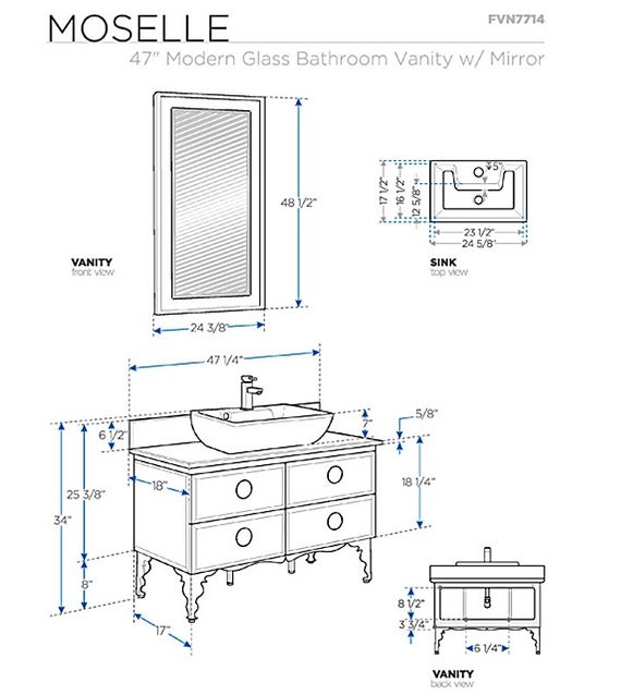 Dimensions: Vanity: W 47.25″ x D 18″ x H 34″