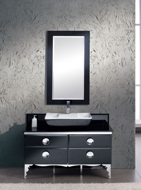 The Moselle vanity is the epitome of luxury. This high quality vanity has a steel frame construction with a tempered glass exterior. The interior drawers are made from Macasser Ebony which gives it a classic, high end look. Many faucet styles to choose from.