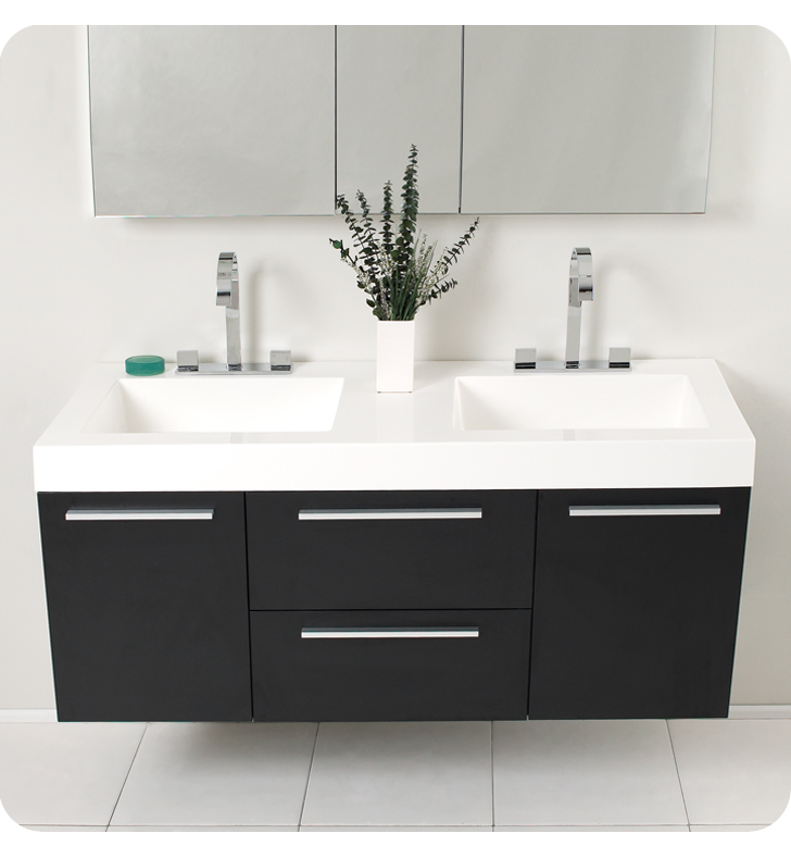 There is always great design in simplicity. Double the greatness with this double sink vanity with accompanying medicine cabinet. To ease any storage worries, beautiful mirrored medicine cabinet will satisfy immediate storage needs for two. A beautiful widespread chrome faucet is also included. A great ensemble for those with room to spare but not without limitations on measurements. Ideal for anyone looking for a winning combination of style, sleek design, and size that brings it all together to present something dashingly urban. Optional side cabinets are available.