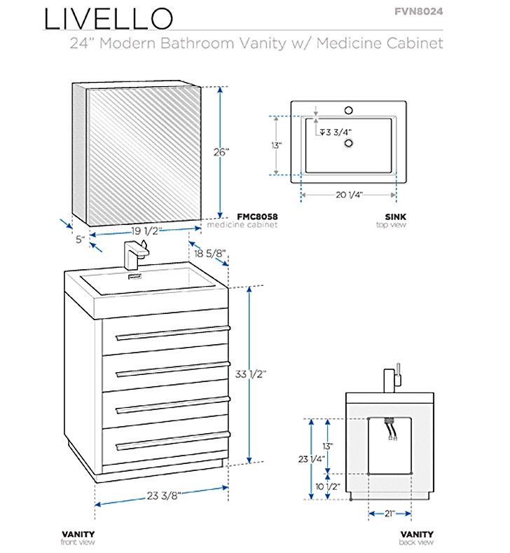 Materials: MDF with Acrylic Countertop/Sink with Overflow