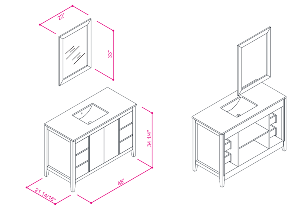 33”H x 48”W x 22” D