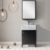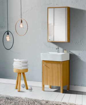 space. The vanity is finished in either Black Grain or Light Maple, both