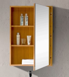 matched perfectly to the wood-trimmed, matching-finish medicine cabinets.