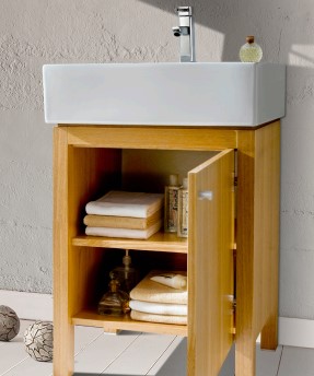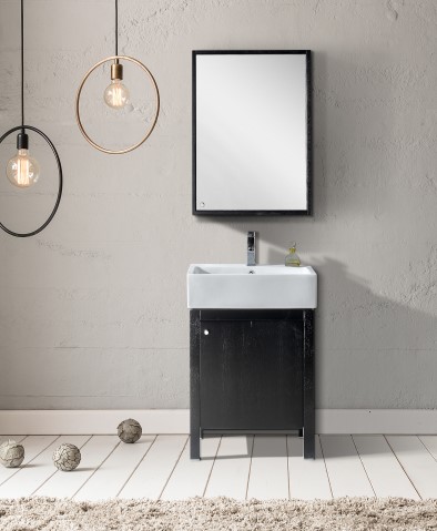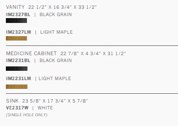 space. The vanity is finished in either Black Grain or Light Maple, both