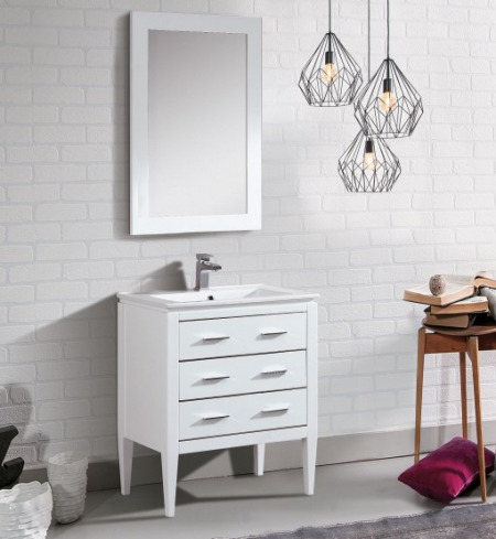polished chrome handles add delicate detailing to the vanity while still