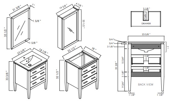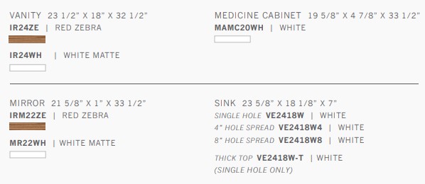 mirrors. The vanity set is completed by your choice of a thick or slim grade