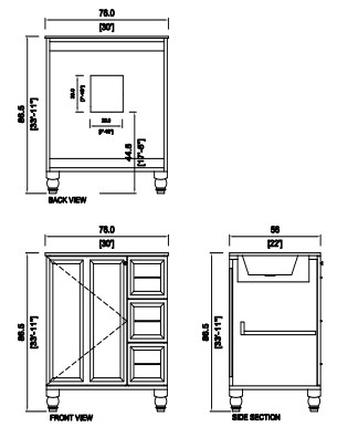• Dimension: 33.11”H x 30’’W x 22’’D