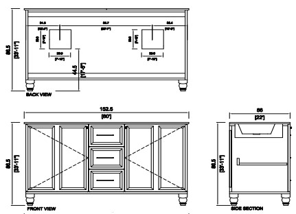 • Dimension: 33.11”H x 60’’W x 22’’D
