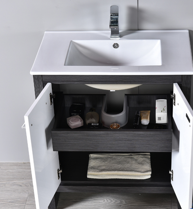 • Milan Vanity 30 Inch • Soft close drawer and doors • Top-mount basin • Spacious storage design
