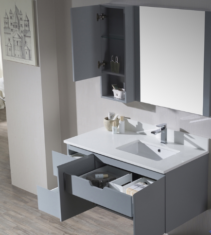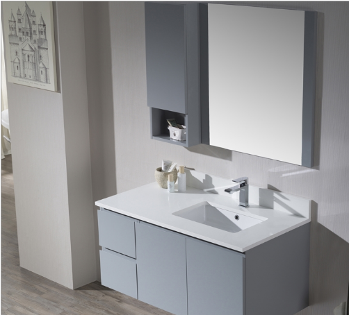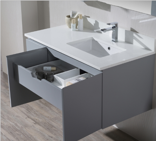 Monaco 42 Inch Right Basin Metal Grey Vanity – Wall Hung