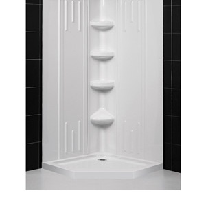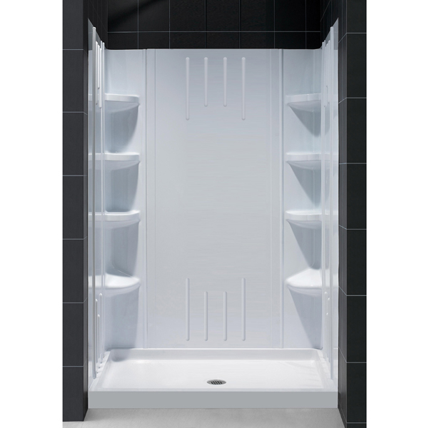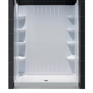 Items included: Single Threshold Shower Base and QWALL-3 Shower Backwall Kit