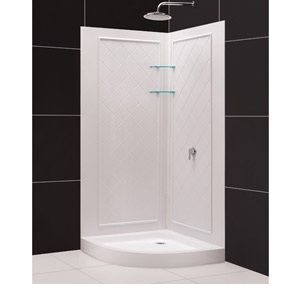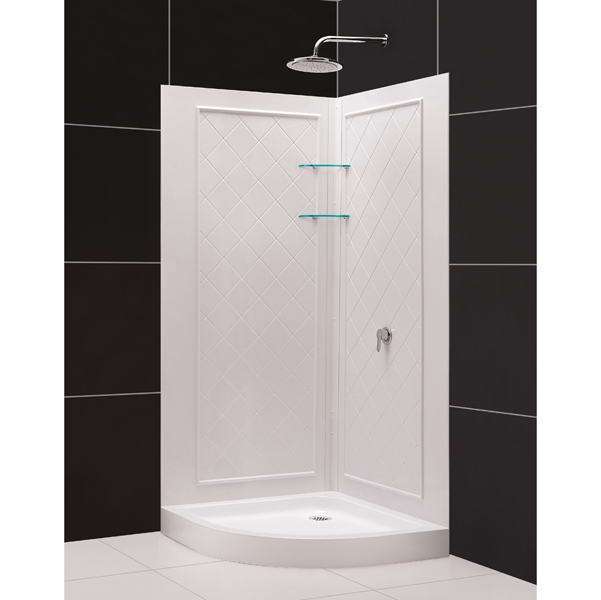 Items included: Quarter Round Shower Base and QWALL-4 Shower Backwall Kit