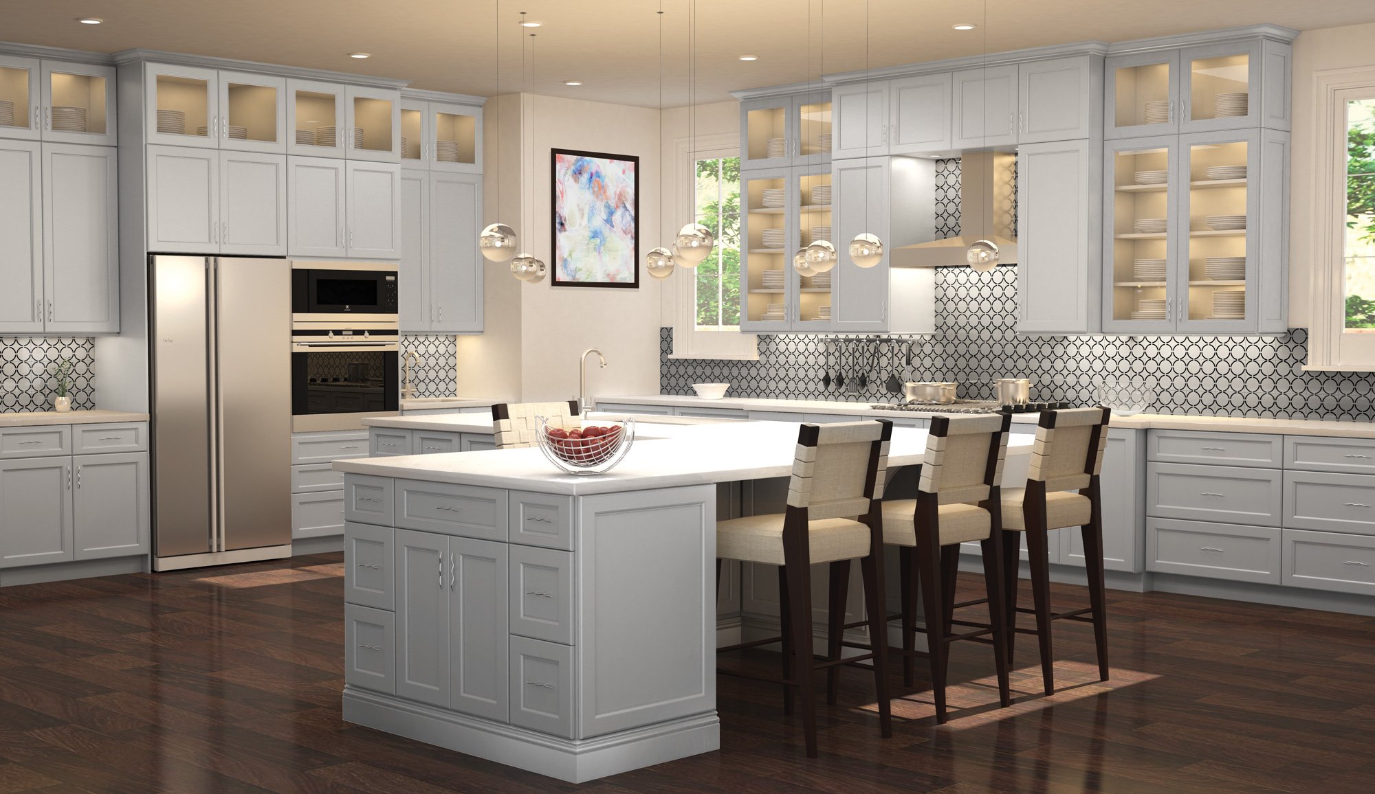 With a look that brings the word ambiance to mind, Pastel features an air of elegance and a calming light grey finish. To reflect your cultivated sense of taste, the alluring finish harmonizes the recessed panels and adds subtle charm to its refined look. It blends into kitchens that feature chic furnishings, and stands out in looks that are highlighted by eye-catching pops of color.