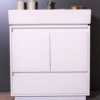 ROMINA Oak and white modern bathroom vanity offers a white integrated