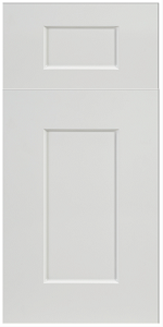 Modern, sleek and clean with a square, flat panel, these white satin cabinets by CNC imbue the room with a sense of twenty-first-century style and in-vogue look. Without the interruption of frames, center stiles, and rails, the Sydney door gives a smart and spacious effect. Including plywood sides and a dovetailed soft close drawer, at no additional cost.
